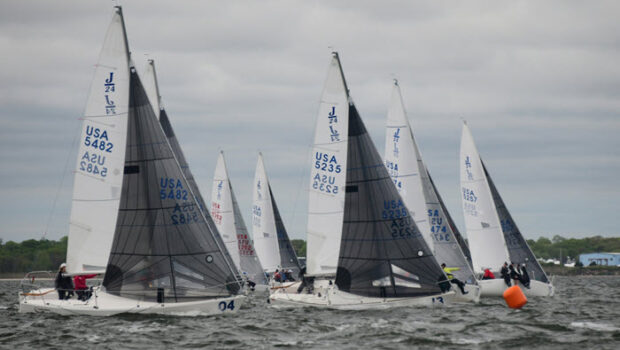 Day Three Recap: The forecast for Sunday’s final two races called for lighter winds, which many teams hoped might be the case. Mother Nature had other plans. The North wind blew strong at 18-22 mph for the last two of eight contests. Many teams chose to power down with their jibs, while others muscled through with their genoas.