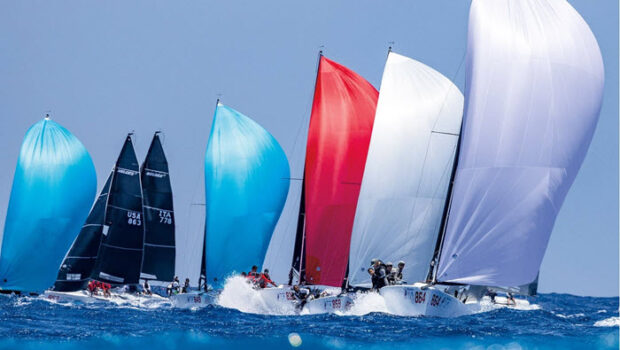 This star-studded event drew 31 boats from around the globe and was won by Peter Duncan and the crew of Raza Mixta, pictured in the inset at bottom.