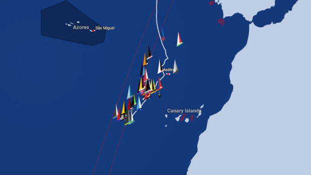 As the lead group passes the latitude of the Canary Islands, where they might normally find the trade winds blowing to carry them down towards the Cape Verdes and the Equator beyond, the breeze is lightening and becoming ever more unsettled. The race now spans a full 400 miles back to China’s JingKun Xu (Singchain Team Haikou) in 40th place.