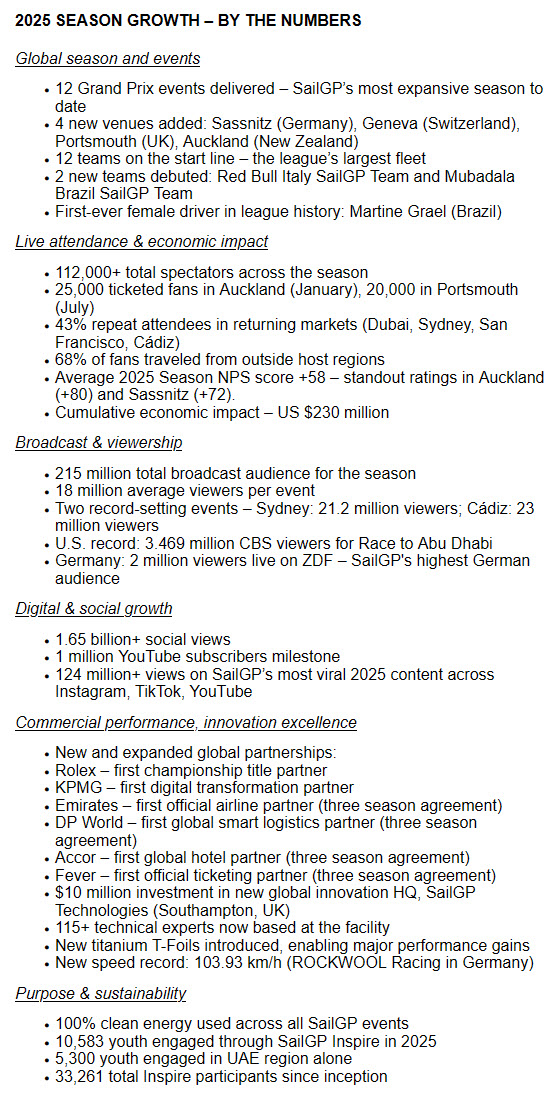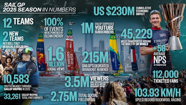 SailGP closed its 2025 Season with unmatched audience growth, new commercial partnerships, high-profile investors, and scaled global operations. For the numbers, click here.