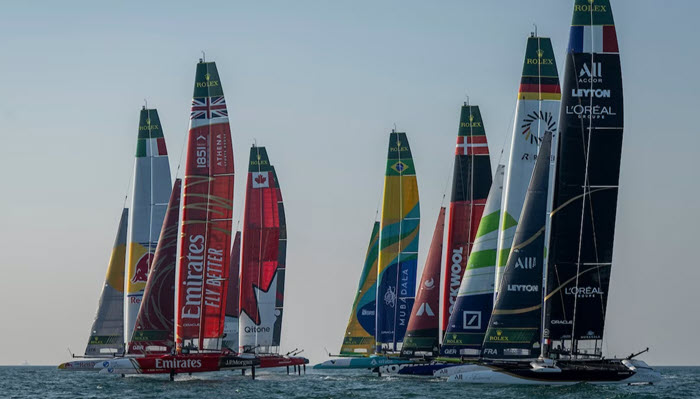 • Thirteen teams compete in identical F50 catamarans.