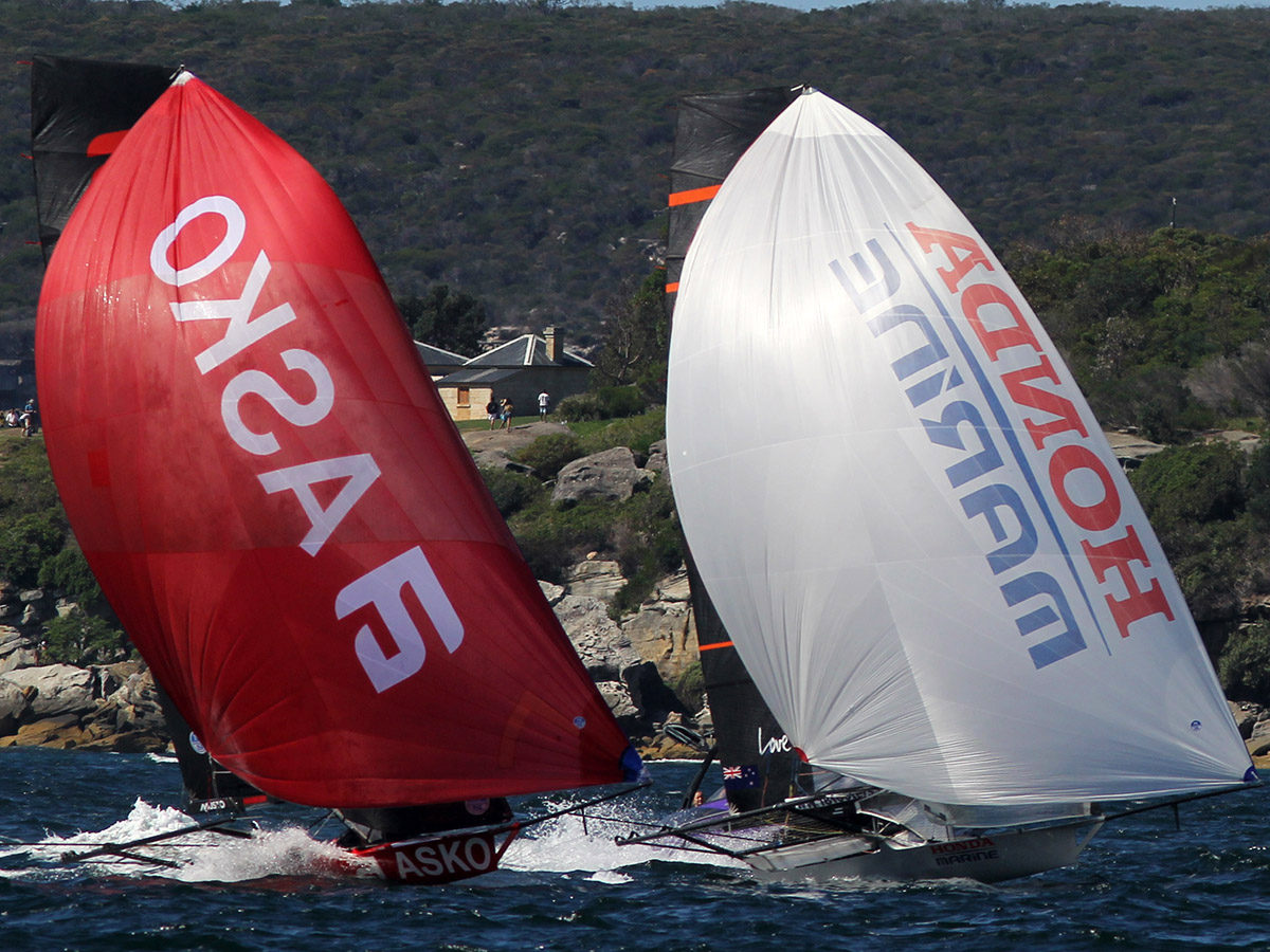 Asko Appliances and Honda Marine side-by-side down the first spinnaker run from the Beashel Buoy
