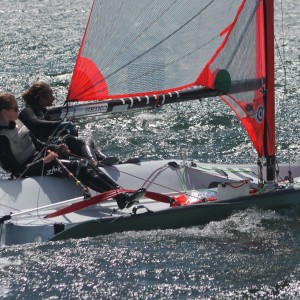 29er sailors Adele Whitmyer and Katie Kelly going upwind on the final day of the CISA Advanced Race Clinic in Long Beach, CA. Photo by Dave Hughes... Read More →