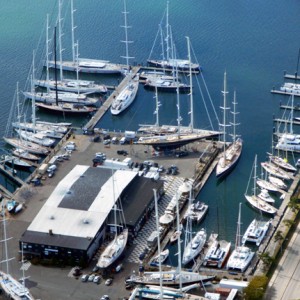 From the aerial perspective, even the mighty Hanuman [Endeavor II] J-Class boat [out of water on stands] and the 142 foot ketch “Rebecca” look small. As the fall chill rolls in, The Newport Shipyard in Newport, ... Read More →