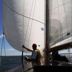 “Running before a NW’ly across Long Island Sound last weekend in the 8-Metre Angelita. It was about the nicest day afloat I’ve had.” – John Rousmaniere... Read More →