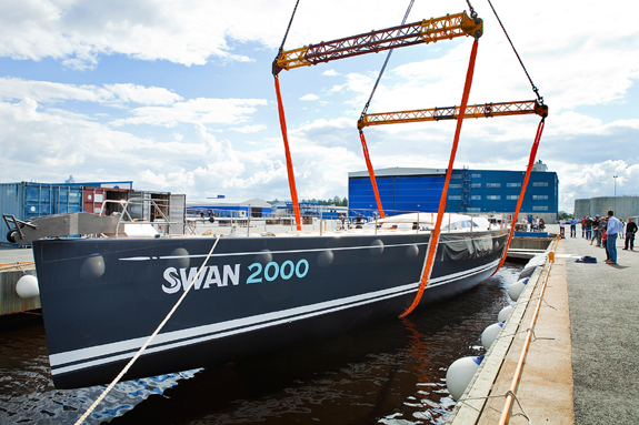 When the new Swan 90S, Freya was launched at the Nautor’s Swan facility in Pietarsaari, Finland, she was the 2,000th new Swan built. With a 46 year history behind them, Nautor’s Swan has delivered 95 different models of Swan – from the first Swan 36 through to the new Swan105. Photo by Eva-Stina Kjellman 2012.