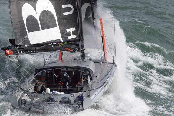 Aerial photo-shoot of the IMOCA Open 60 Alex Thomson Racing Hugo Boss during a training session before the Vendée Globe in the English Channel. The Vendée Globe, which begins in November, is a round-the-world single-handed yacht race, sailed non-stop and without assistance. Photos by Christophe Launay.